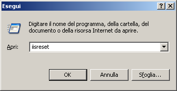 - Scegliere Esegui dal menu Start di Windows. Immettere: iisreset, quindi fare clic su OK per riavviare IIS.