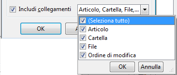 Se la selezione include un collegamento a una cartella, tutti i contenuti della cartella di destinazione verranno inclusi nella finestra di dialogo per raccolta dei file. L'estensione dei dati inclusi sarà coerente con la modalità di raccolta dei dati della cartella destinazione. Se un collegamento a una cartella viene incluso nel gruppo di selezione, i relativi dati e tutti i dati della cartella derivata verranno inclusi. Ogni impostazione di relazione applicata ai dati (includi elementi dipendenti, includi elementi primari e così via) verrà rispettata nel file di destinazione.