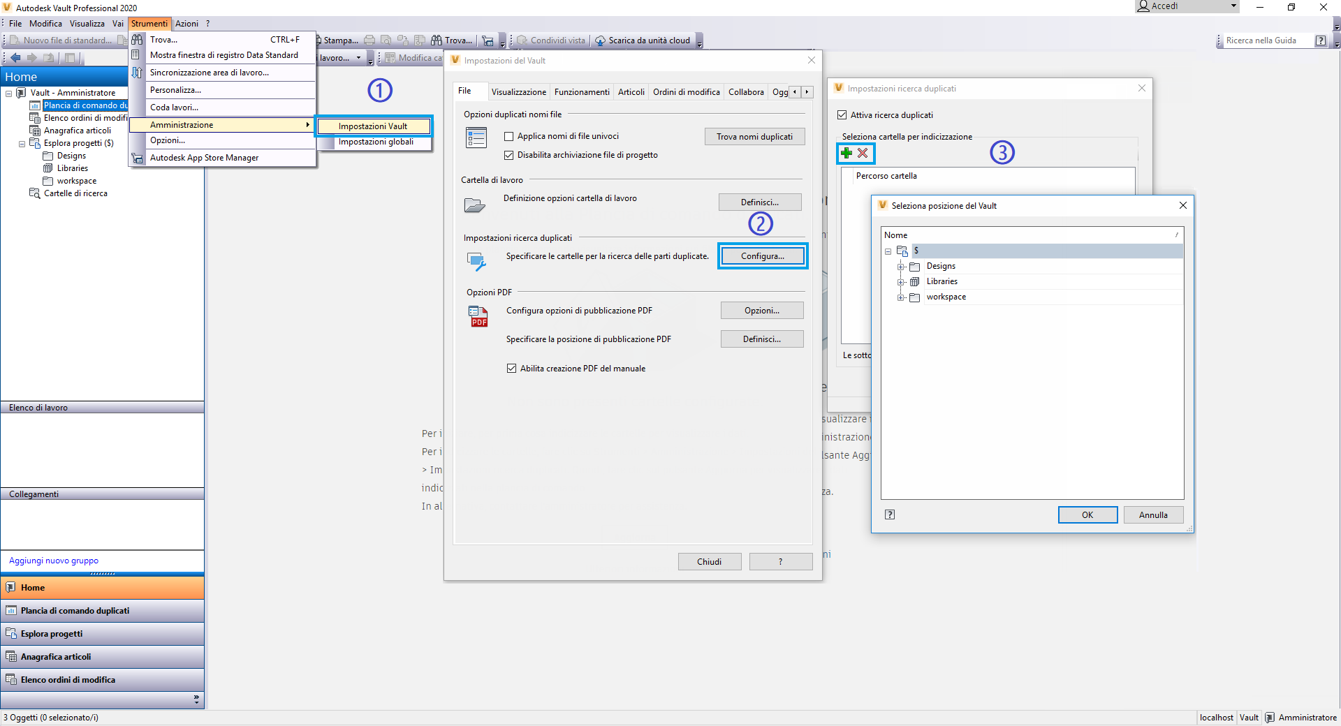Nella finestra di dialogo Impostazioni Vault, definire l'intervallo di ricerca. Specificare le cartelle in cui verranno indicizzate le parti.