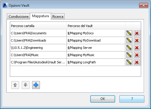 Associare una cartella locale, di rete o di Revit Server ad una cartella del Vault nella scheda Mappatura della finestra di dialogo Opzioni Vault.