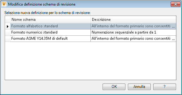 - Nella finestra di dialogo Modifica definizione schema di revisione, selezionare il nuovo schema di revisione che si desidera assegnare al file selezionato. Fare clic su OK.