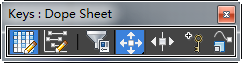 ドープ シートの[キー](Keys)ツールバーには、フィルタとその他の表示コントロールに加え、キーのさまざまな編集を行うための各種ツールがあります。