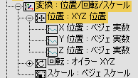 XYZ 位置コントローラは、オイラー XYZ 回転コントローラと同様、X 軸、Y 軸、および Z 軸を 3 つの個別トラックに分割します。 したがって、式コントローラからの参照時に、これらの 3 つのトラックを個別に制御できます。