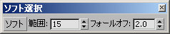 コントロール付きのツールバーが表示され、ドープ シートおよびカーブ エディタ内でキーのソフト選択の範囲とフォールオフを調節します。