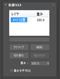 このチェック ボックスにチェックマークを付けると、リスト内のすべてのコントローラの重みが平均化されます。このオプションは、位置リスト コントローラとスケール リスト コントローラのみで使用できます。既定値ではチェックマークが付いていません。