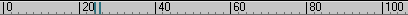 トラック ビューのキー ウィンドウの下部にあるタイム ルーラーは、時間の長さを示す尺度です。このルーラー上の目盛りは、[時間設定](Time Configuration)ダイアログ ボックスでの設定内容によって決まります。タイム ルーラーは、キー ウィンドウで上下に移動して任意のトラックに整列できます。