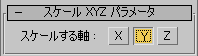 スケール XYZ コントローラをオブジェクトに割り当てると、[モーション](Motion)パネルのロールアウトにスケール XYZ パラメータが表示されます。