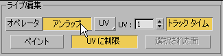 - 3ds Max のマテリアル エディタで、[ライブ編集](Live Edit)領域にある[アンラップ](Unwrap)を有効にします。