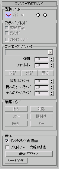 エンベロープ サブオブジェクトのコントロールは、[エンベロープのブレンド](Blending Envelopes)ロールアウトにあります。