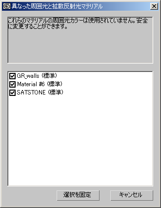 周囲光カラーと拡散反射光カラーの異なるマテリアルを現在の選択内で検索します。