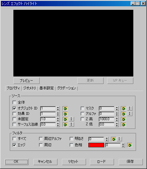 ハイライトの設定はすべてファイルに保存できるため、いつでも設定を再ロードできます。レンズ エフェクト ハイライトの設定は、LZH ファイル(.lzh)として保存されます。次のいずれかを実行します。