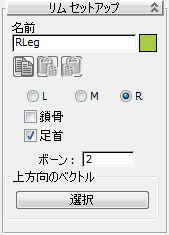 リムの構成には、数多くのサブ要素を使用できます。たとえば、鎖骨、四肢骨、手のひらなどです。リムのマスター パラメータは、[リム セットアップ](Limb Setup)ロールアウトにあります。