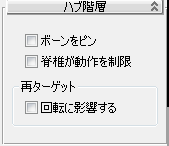 - [ハブ階層](Hub Hierarchy)パネルで、[ボーンをピン](Pin Hub)にチェック マークを付けます。