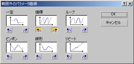 このレイヤのループ オプションにアクセスするには、[範囲外のタイプのパラメータ カーブ](Parameter Curve Out-of-Range Types)ボタンをクリックします。