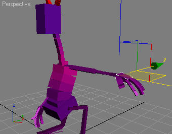 アニメート中のボーンのストレッチを可能にするには、ボーンを選択し、[階層](Hierarchy)パネルに切り替えて[リンク情報](Link Info)をクリックし、[アニメーション モード](Animation Mode)領域で[操作でストレッチが起きます](Manipulation Causes Stretching)をオンにします。この機能を使用すると、リグ要素を動かすだけで、跳ね返ったり伸び縮みするアニメーションをビューポートでインタラクティブに作成できます。