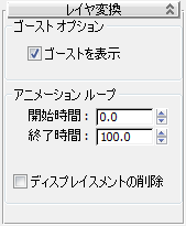 その後、アニメーションの過程でこのディスプレイスメントを削除します。このオプションは、character studio の Biped のその場歩きモードと同じ機能を提供します。