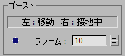 [ゴースト](Ghost)領域の[フレーム](Frame)編集ボックスを使って、2 つの線画(ゴースト)を表示することにより、ソース クリップと宛先クリップを表示し、前後に動かすことができます。黄色の線画はソース クリップを表し、赤い線画は宛先クリップを表します。前後に動かすプロセスの間、ソースの Biped と宛先の Biped は互いに近づかないことがあります。[開始フレームを設定](Set Start Frame)をクリックすると、宛先クリップが再配置されます。適切な開始フレームが見つかったら、[開始フレームを設定](Set Start Frame)をクリックして、[フレーム](frame)フィールドの値を[開始フレーム](Start Frame)フィールドにコピーします。足の位置の状態をフィールドでモニタしてください。