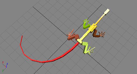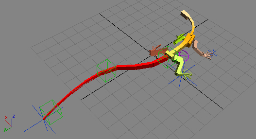 [IK 適用](Apply IK)ダイアログ ボックスで設定した数のノットを持つスプラインが作成されます。これで、ポイント ヘルパーをアニメートさせ、尾のアニメーションを行えます。