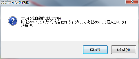 [はい](Yes)をクリックすると、尾の形状をガイドとして使用してスプラインが作成されます。既存のスプラインを選択してキャラクタを制御することもできます。