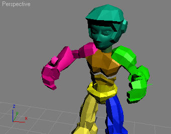 再ターゲットのブレンドは、[リム アニメーション](Limb Animation)ロールアウトにある[再ターゲット](Retargeting)スライダで調整します。
