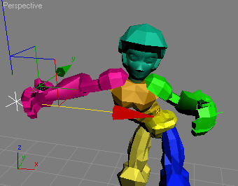 右の IK ターゲットを前方に移動させると、システムは胸部を引っ張り、可能な限り腕の角度を維持しようとします。これは腕が伸びてから胸部が回転するよりも、はるかに自然な動きです。