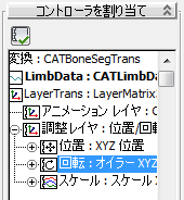 - [コントローラを割り当て](Assign Controller)ロールアウトに移動し、現在のアニメーション レイヤの[回転](Rotation)トラックをハイライト表示します。