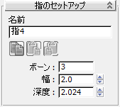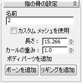 このロールアウトで、選択した指のボーンの設定を行います。
