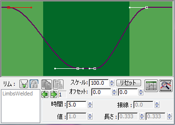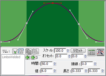 [LiftPlantMod]コントローラはすべてのリムに使用できますが、適用されるのは脚だけです。このグラフは、足が地面にある時間と、宙にある時間の割合を制御します。このウィンドウで編集可能な唯一の値は、グラフ下のスライダです。