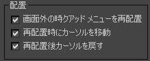 - クアッド メニューの一部が画面からはみ出している場合、自動的に位置を修正します。画面にメニュー全体が表示される位置に移動します。