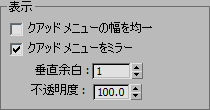 - このチェック ボックスにチェック マークを付けると、表示されているクアッド メニューはすべて等幅になります。幅は、最大幅のクアッド メニューの幅に等しくなります。