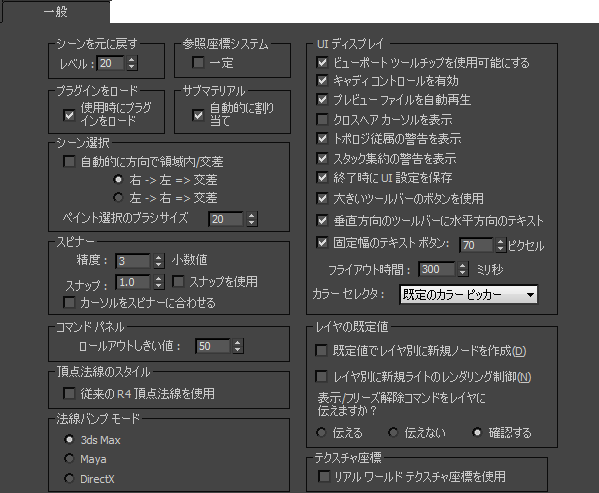 最後に 3ds Max を使用したときの位置にパネルとツールバーを戻します。このチェック ボックスのチェック マークをはずすと、チェック マークを付ける前の状態にパネルを戻します。