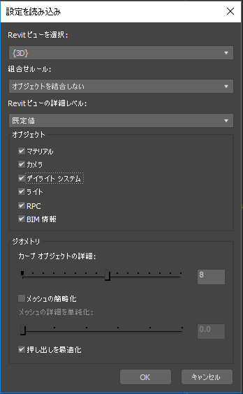 Revit ファイルから読み込むジオメトリの種類を選択します。該当するオブジェクトは次のとおりです。