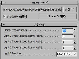 4. グループ ビューを終了し、ShaderFX エディタを最小化します。[MyColor]アトリビュートと[MyMultiplier]アトリビュートが[パラメータ](Parameters)ロールアウトで使用できるようになりました。
