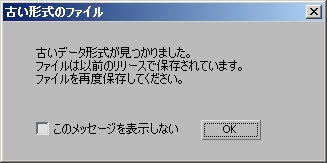このチェック ボックスにチェックマークが付いている場合、[古い形式のファイル](Obsolete File)ダイアログ ボックスは表示されません。このダイアログ ボックスの表示は、[カスタマイズ](Customize)メニュー