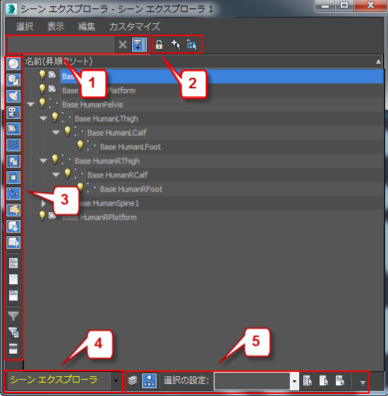 シーン エクスプローラのツールバー