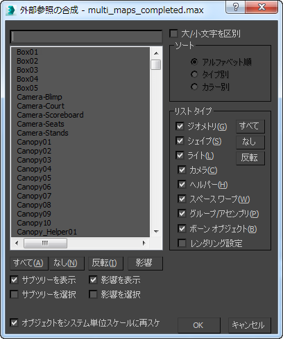 外部参照合成オブジェクト リスト