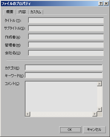 [ファイル プロパティ](File Properties)では、シーン ファイルのプロパティを表示する Windows Explorer などのアプリケーションを使いながら、Windows で使用できるシーンについての情報を入力できます。