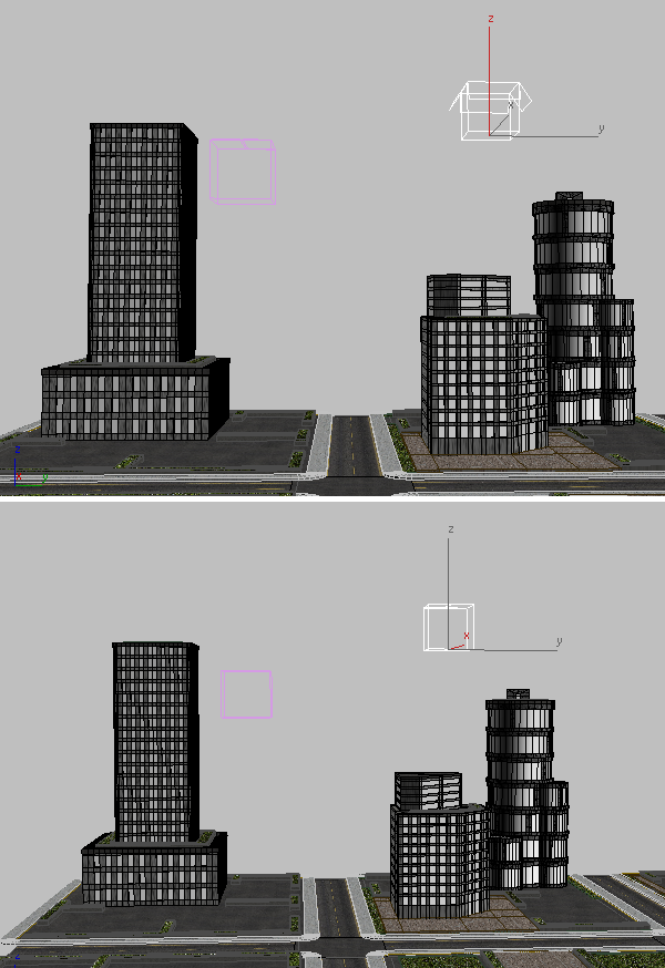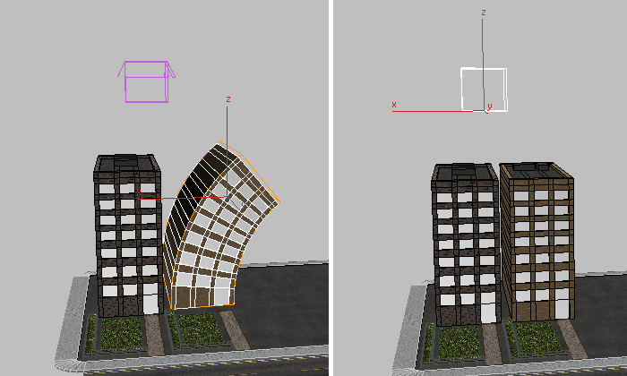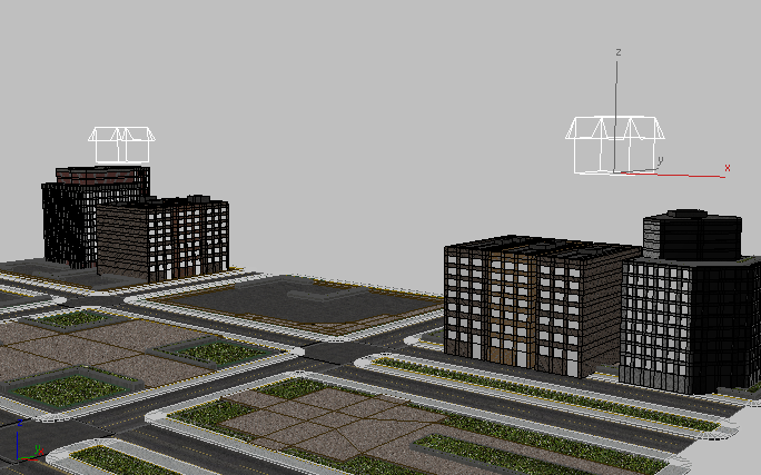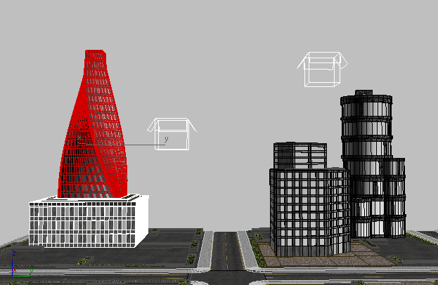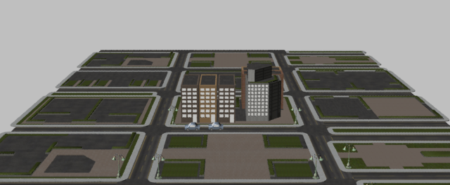 1 つの都市ブロックのオブジェクトが追加されたコンテナ(右)