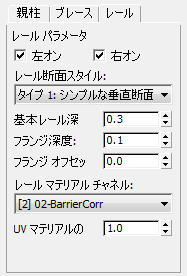 - チェックマークを付けると、レール オブジェクトにブレースのジオメトリが含まれます。 チェックマークが付いていない場合は使用されません。