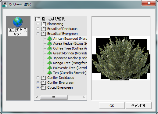 ツリー定義ファイルを選択すると、木のオブジェクトのテクスチャおよびジオメトリが更新されます。
