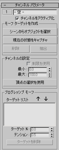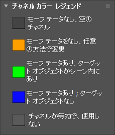 チャネルは使用されています。チャネルは、シーン内に存在するモーフ データおよびターゲット オブジェクトを含んでいます(ターゲットは更新できる)。