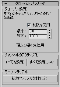 チャネルのオン/オフを切り替えます。非アクティブなチャネルは、モーフ結果には影響しません。このコントロールを使用して、特定のチャネルをオフにし、他のチャネルのアニメートに集中させます。