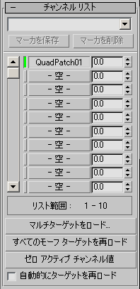 チャネル リスト内のアクティブなモーフ ターゲット エントリが空の場合、このボタンは使用できず、「再ロードするターゲットがありません」と表示されます。