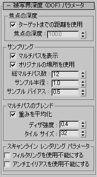 重要: これは、既定値のスキャンライン レンダリングのための効果です。他のレンダラーには独自の被写界深度効果があります。