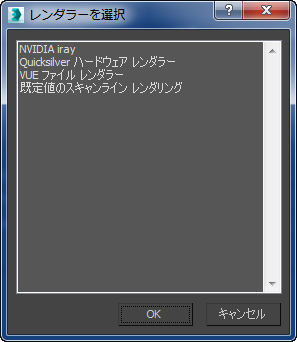 このダイアログ ボックスは、[レンダリングを割り当て](Assign Renderer)ロールアウトでいずれかの[...](レンダラーを選択)ボタンをクリックすると表示されます。