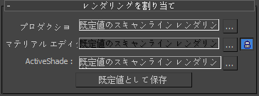 クリックして現在のレンダラーの割り当てを既定として保存し、次回 3ds Max を起動したときにこの割り当てが有効になります。