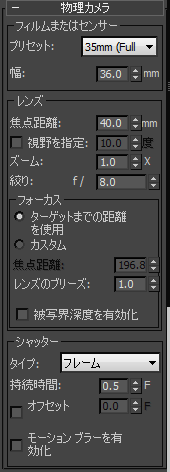 [レンズのブリーズ](Lens Breathing) レンズを焦点距離に向かって、または離れるように移動して視野を調整します。[レンズのブリーズ](Lens Breathing)の値が 0.0 の場合、この効果は無効になります。既定値は 1.0 です。