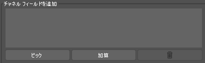 - [ピック](Pick)をクリックしてシーンからオブジェクトをピックしてチャネル フィールドとして追加するか、[追加](Add)をクリックしてダイアログからチャネル フィールドを選択します。選択した既存のチャネル フィールドを削除するには、[削除](Delete)をクリックします。