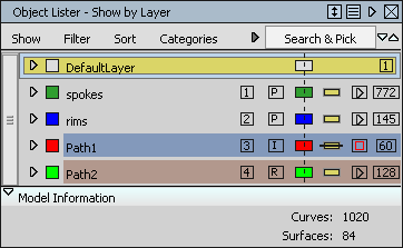 General Preferences の Modeling Layers mode を Number に設定すると、Object Lister はレイヤ名ではなく、#1、#2 などのレイヤ番号を表示します。