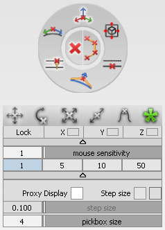 Prop mod - このツールは Transform > Modify > Proportional mod と同じように動作しますが、インタフェースはいっそうわかりやすく、フォールオフの値を簡単に試すことができます。